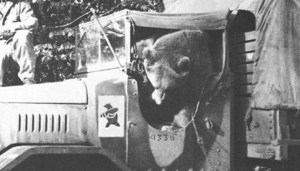 Until he got too big, Wojtek would ride in the passenger seat of the transport vehicles, but eventually had to ride in the back.