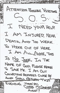 By then, Chris was weak and starving. He left a note on the bus asking for help, saying that he was near death.