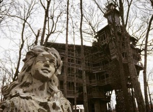 Horace started building in 1993. By 2012, the structure was 97 foot tall and approximately 10,000 square feet, supported by 7 oak trees.