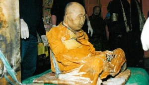 More attention was drawn to the practice in 1975 when the 550 year old mummified corpse of Sangha Tenzin was unearthed in the Himalayas. The shrine around him collapsed, exposing his body.