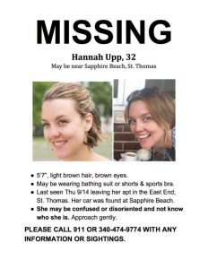 Her car, with her purse and phone inside, was found at Sapphire Beach. Her clothes and shoes were found at the water’s edge.